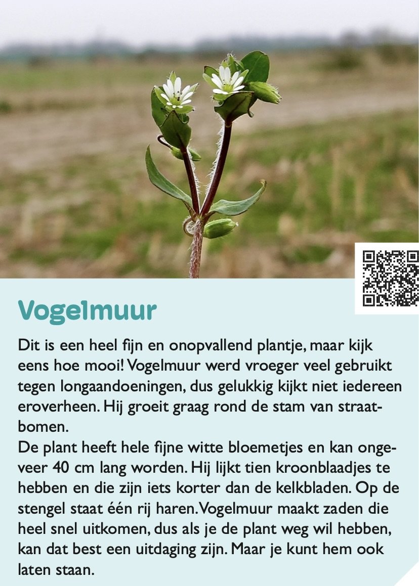 De kenmerken van Vogelmuur zijn te vinden in het plantenpaspoort, tabje kenmerken