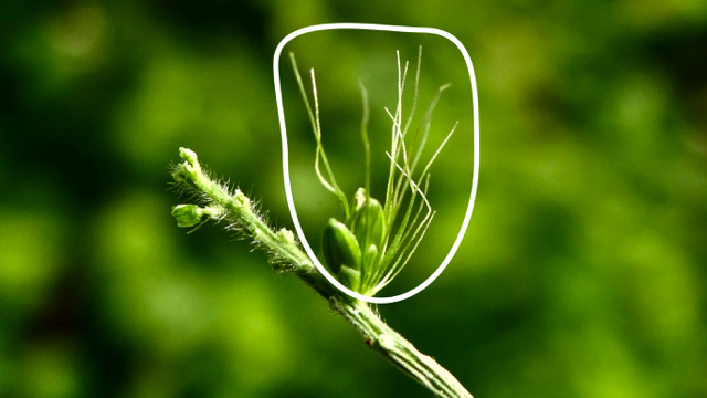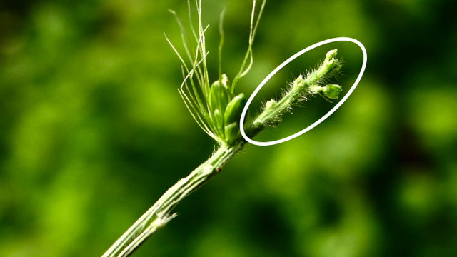 Dit gras valt tijdens de bloei in de hoogzomer op door zijn typische aarpluim die kort gesteelde aartjes met een flink aantal twee tot driemaal zo lange naaldvormige borstels of haren heeft. De aarpluim is daardoor cilindrisch van vorm en lijkt in de verte wel iets op een opgezwollen aar van Timoteegras, dat wat eerder bloeit.