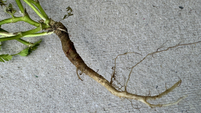 Ze hebben een penwortel en aan de gevulde stengels staan de bladeren verspreid. Deze zijn in omtrek driehoekig en hebben een schedevormige bladsteel. De bladeren zijn tot 2 voudig geveerd en de deelblaadjes hebben een ingesneden rand. Je vindt hier echter geen getande toppen aan de deelblaadjes, zoals je die wel bij Heggendoornzaad kunt vinden.