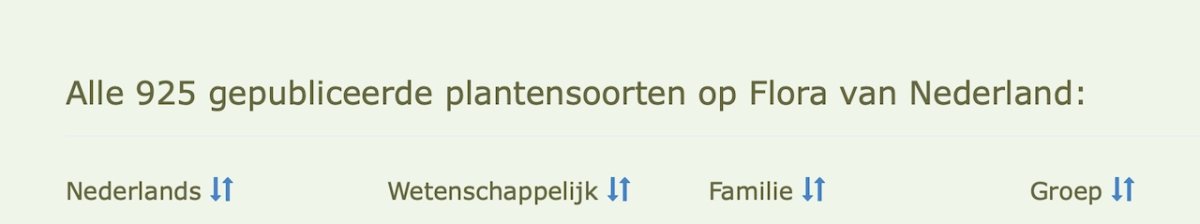 De index van plantensoorten op Flora van Nederland is een overzicht waarin alle gepubliceerde plantensoorten bij elkaar staan. Je kunt eenvoudig zoeken op Nederlandse naam, wetenschappelijke naam, familie en groepen.