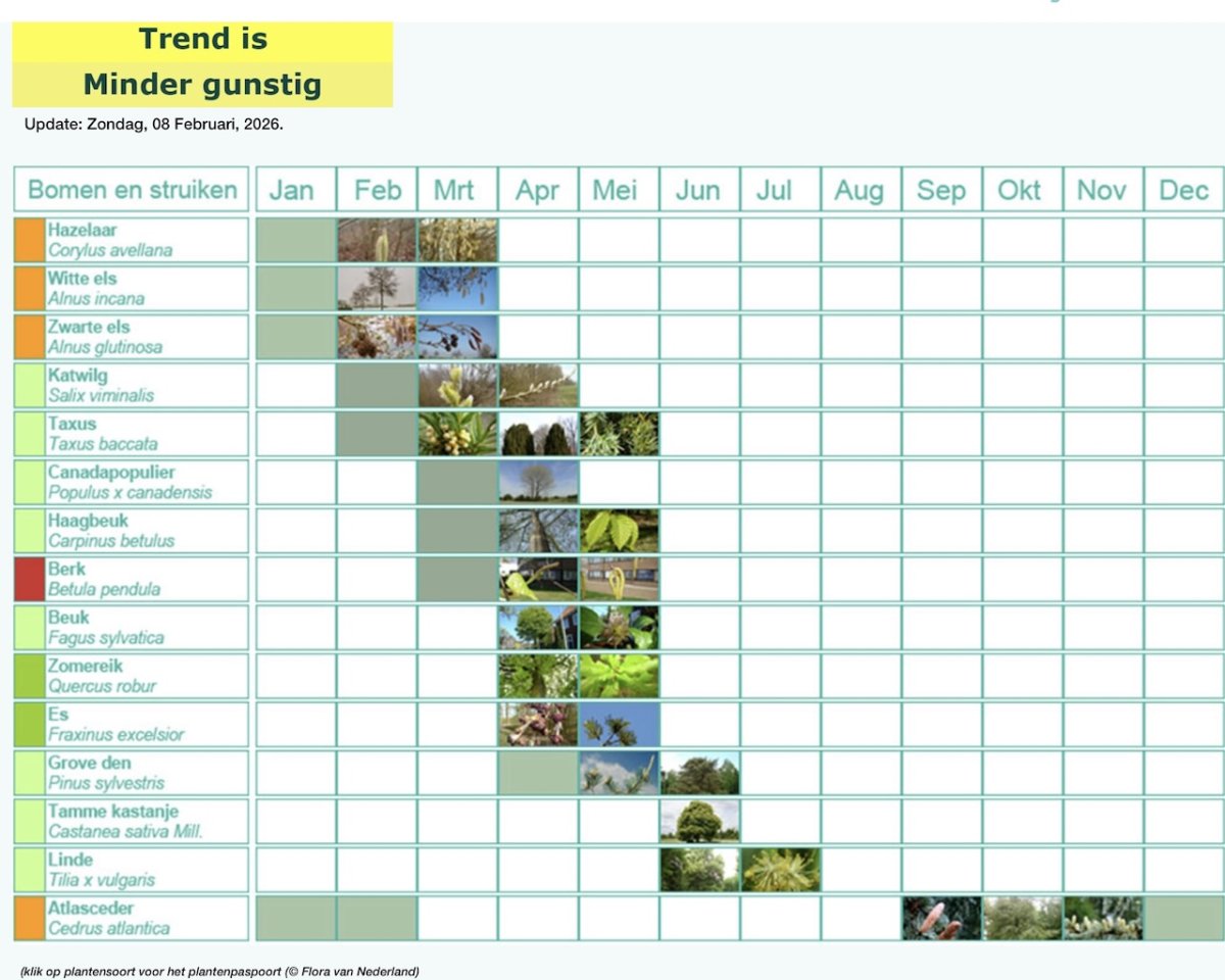 Ga verder naar de Pollenkalender bomen en struiken op Pollennieuws.