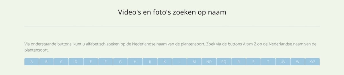 Het zoeken naar determinatievideo's en foto's binnen de Flora van Nederland gaat op een eenvoudige wijze. Ook planten met een naam die uit twee delen bestaat kunt u op verschillende plekken binnen het alfabetisch zoeken vinden.