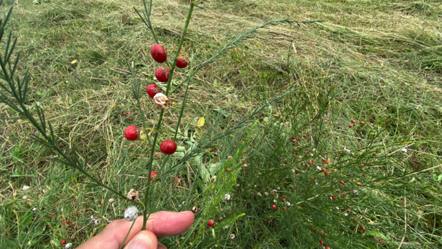Vrouwelijke planten zijn later in het jaar te herkennen aan deze bessen. Aan mannelijke planten ontbreken deze. Asperge wordt veel gekweekt, maar verwildert ook en komt dan in onze natuur terecht.