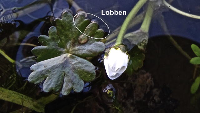 De Grote waterranonkel, Ranunculus peltatus Schrank, is een eenjarige of tweejarige plantensoort en tref je aan in stilstaand of stromend, zoet en soms voedselrijk water. Aan de tot 3 meter lang wordende stengels staan in en onder het water bladeren die verdeeld zijn in fijne lijnvormige slippen. De tot boven het water uitstekende handvormige bladeren, die bij deze soort voorkomen en op het water drijven, zijn opgedeeld in vijf segmenten die naar de rand toe van niet al te diepe lobben zijn voorzien.