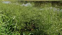 In veel van onze waterplantengemeenschappen als oeverpioniersoort kunnen we in sloten en waterkanten de grote pluimvormige bloeiwijzen vinden van de Grote waterweegbree, Alisma plantago-aquatica. Ook de grote omhooggerichte bladeren vallen op. De bloemen hebben witte tot lichtroze kroonbladen. De bloemen openen zich pas na de middag.