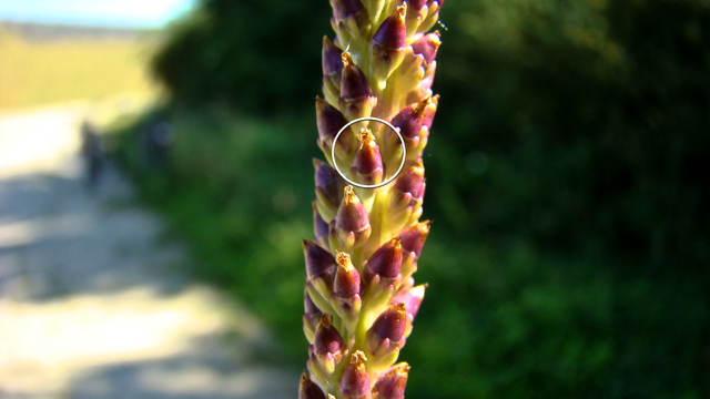 De bloeiwijze bestaat uit een steel met daarop een aar. De afzonderlijke bloemetjes zijn dicht opeen ingeplant op de aarsteel. De aarsteel is korter dan of maar heel weinig langer dan de bladeren. De bloemetjes hebben een bruinachtige bloemkroon en witachtige helmdraden. De hoogte van de bloeiwijze, en dus de hele plant, varieert van een paar cm tot 50 cm. Ze bloeit van mei tot november.