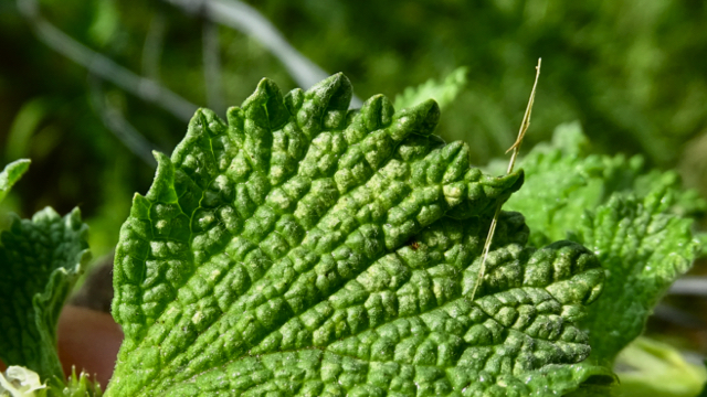 De plant is sterk behaard en ontwikkelt op zijn penwortel veel rechtopstaande en dicht bij het maaiveld vertakte zijstengels. Aan de vierkante stengels staan de niet al te grote bijna ronde gesteelde bladeren tegenover elkaar en kruisgewijs. De bladeren hebben een gekartelde hand, zijn heel sterk gerimpeld en sterk viltig behaard. Ze hebben een duidelijke steel.