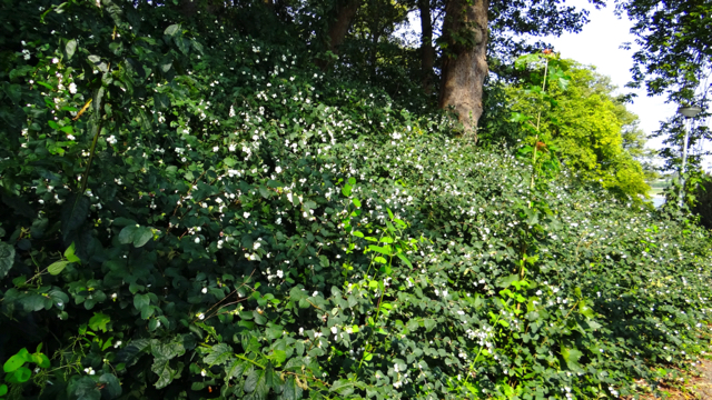 Gewone sneeuwbes, Symphoricarpos albus (L.) S.F.Blake, is een uit Noord Amerika afkomstige struik die zich met zijn uitlopers gemakkelijk verbreidt als hij eenmaal gevestigd is. In parken, parkbossen, landgoederen waar de soort is aangeplant kan ze de hele ondergroei gaan vormen en verdringt daarmee de inheemse soorten. Ook in natuurlijke bossen zie je de soort oprukken en de inheemse kruiden en struiken verdringen.