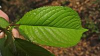De bladeren komen tegelijkertijd met de bloemen uit de knoppen te voorschijn. Ze zijn aanvankelijk lichtgroen en teer, met aan de onderkant een verspreide beharing. Op de lange steel zitten twee klieren vlak onder de aanhechting van de veernervige bladeren. Ze kunnen meer dan een decimeter groot worden, hebben een gezaagde rand en lopen uit in een spitse punt. De vorm is langwerpig en de grootste breedte vind je boven het midden. De kleur is dan veel donkerder groen en de bladeren zijn dan niet meer doorzichtig.