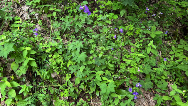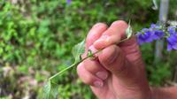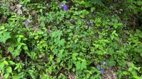 Boven aan de stengel ontstaat de trosvormige bloeiwijze met daarin een aantal blauwkleurige bloemen. De bloemen zijn nogal lang gesteeld, staan naar beneden geknikt en min of meer naar een kant gericht. Ze zijn tot zo'n 3 cm groot en hebben priemvormige kelkbladen. De schutbladeren zij zeer smal. Het zijn protandrische bloemen. Na bevruchting ontwikkelt het onderstandig vruchtbeginsel tot een doosvrucht.