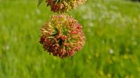 Tegelijk met het ontluiken van de twijgen en bladeren ontwikkelen ook de bloeiwijzen uit de knoppen. De bloeiwijzen zijn bolvormige hoofdjes die met twee tot drie uit een knop ontstaan en bij elkaar blijven hangen. Je ziet twee soorten bollen ontstaan: kleinere die groen van kleur blijven en de meeldraadbloemen bevatten en grotere waarin de stamperbloemen te vinden zijn. De bloemen zijn erg eenvoudig en bestaan uit een aantal erg kleine schubben met beharing en de meeldraden of vruchtbeginsels. De vruchtbeginsels hebben een roodkleurige stijl met stempel, waardoor de bollen met stamperbloemen korte tijd rood kleuren. Na de bevruchting via de lucht groeien de vruchtbeginsels uit tot behaarde nootjes die nog lang in de grote bollen gegroepeerd bij elkaar blijven. Deze vruchtbollen hangen de hele winter door nog aan de boom en vallen pas na een jaar van de boom.