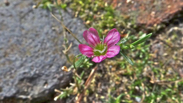 De planten hebben aanvankelijk sterk gaffelvormig vertakte liggende stengels die aan de uiteinden oprijzen tijdens de bloei. Ze worden niet veel groter dan een decimeter tot hooguit zo'n 15 cm. Aan de vertakte stengels staan de smalle tot een mm brede lijnvormige bladeren tegenover elkaar. Ze zijn niet veel groter dan 2 tot 3 cm en hebben geen steunblaadjes.