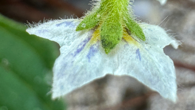 De hele pant inclusief kelk- en kroonbladen is bezet met veel nogal lange haren en wat klierharen; je zou verwachten dat ze daardoor kleverig aanvoelt, maar dat is in de praktijk niet zo. Wel geuren ze wat aangenaam.