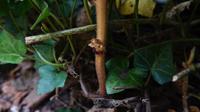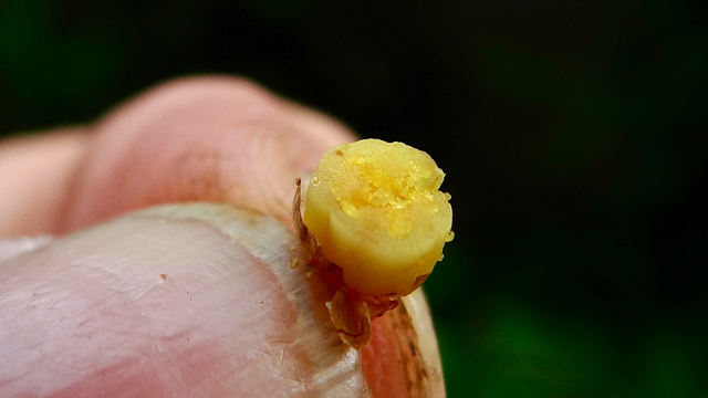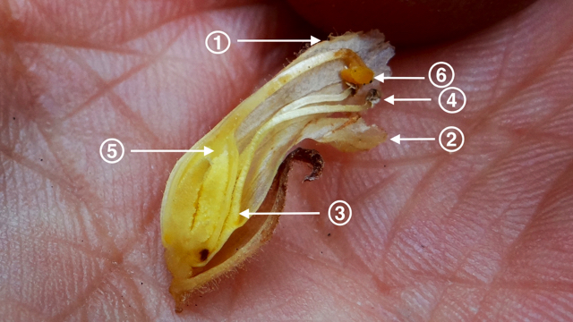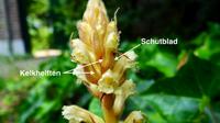 Aan de rechtopstaande bleekgele tot bleekbruine stengels ontstaat net boven de wortelknol een reeks dakpansgewijs geplaatste schubachtige kleine driehoekige bladeren zonder bladgroen (chlorophyl); naar boven toe staan deze schubvormige bladeren verspreid aan die stengel.