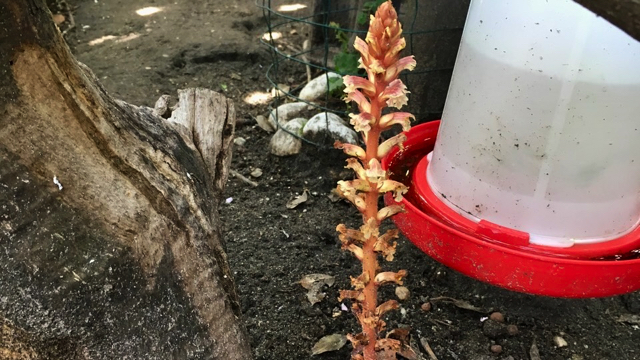 Soms treden Bremrapen op onverwachte plekken op, zoals Hetty Broos liet zien op de foto van een Bremraap in haar kippenren. Waarvoor dank.
