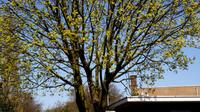 Als straatboom aangeplant vind je in steden de in april met gele rechtopstaande tuilen bloeiende Noorse esdoorn, Acer platanoides L. uit de Zeepboomfamilie. De boom is vrijwel altijd aangeplant, maar kan ook wel verwilderen. Zo nu en dan vind je de boom dan ook in loofbossen.