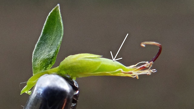 De bladeren zijn erg fijn en maar een mm of 5-6 lang en toegespitst en hebben nauwelijks een steel; steunblaadjes zijn nauwelijks te onderscheiden. De bladeren kunnen afstaan wat erop duidt dat er een soort scharniertje onder aan de bladschijf zit. Dat zou erop kunnen duiden dat we eigenlijk met een gereduceerd veerdelig blad te doen hebben met slechts één deelblaadje!