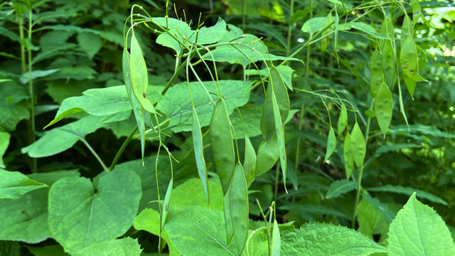 De vruchten zijn opvallend en zoals alle bij de Brassicaceae, ook wel Koolfamilie genaamd, bestaat het vruchtbeginsel uit twee vruchtbladen en een tussenschot. De randen van de twee vruchtbladen zijn de zaadlijsten, hieraan ontwikkelen zich de zaden, tussen de zaadlijsten vormt zich een vliezig tussenschot. Bij een dwarse doorsnede zie je twee kamers waarin zich, om en om, de zaden bevinden. De vruchten zijn groot en plat, ovaal met een puntig uiteinde en dito voet, de lengte kan 4 tot 9 cm zijn. De vorm van deze vruchten lijkt sterk op onze groente peultjes en wijkt daarin af van de meer ronde penningvormige vruchten van Judaspenning. Toch vallen vruchten van Judaspenningen onder het begrip hauwtje. Dat komt vanwege de volgende afspraak. Meer dan 3 x zolang als breed: hauw; minder dan 3 x zo lang als breed: hauwtje; dit ongeacht de grootte van de vrucht.