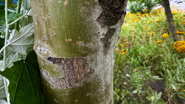 Witte abeel, Populus alba, herken je het gemakkelijkste aan de bladeren die vanonderen witviltig zijn.Daardoor zie je de kroon van de boom altijd met schakeringen van donkergroen en wit als de wind er doorheen speelt. Het duidelijkst zie je dat in de binnenduinen, waar de soort gemakkelijk verwildert. De bladeren zijn verder handvormig gelobd met een zwak hartvormige voet. De stam van de Witte abeel is lichtgrijs van kleur en kenmerkt zich door de ruitvormige donkere holten. Witte abelen worden veel aangeplant als laanboom, in parken en grote tuinen.