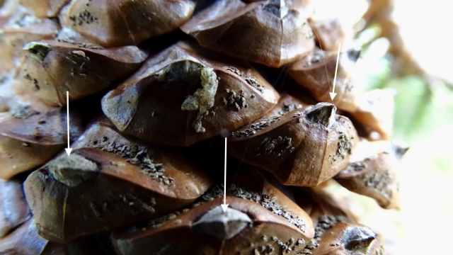 Zeeden, Pinus pinaster, is veel aangeplant in de duinen langs de kust, maar vind je ook wel in bossen van buitengoederen en dergelijke en ook wel door spontane vestiging zoals in Noord-Brabant. Deze Dennen hebben twee naalden per kortlot en die naalden zijn langer dan 10 cm en tot wel 25 cm toe. Dat is een goed onderscheid met de andere Dennensoorten. De knoppen bevatten geen hars en zijn daardoor niet plakkerig. De rijpe kegels zijn conisch van vorm en kunnen tot 15 cm lang zijn, wat zo ongeveer de grootste kegels zijn binnen de Dennen.